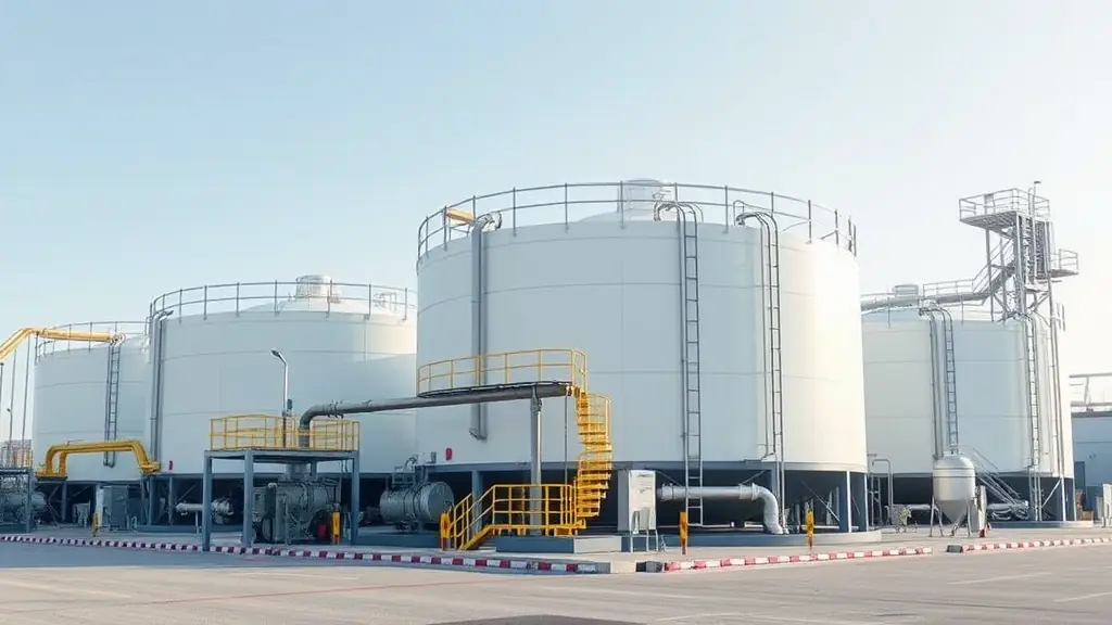 An aerial view of STORAGE SG PTE. LTD.'s tank farm, showcasing the secure perimeter, surveillance systems, and robust infrastructure.